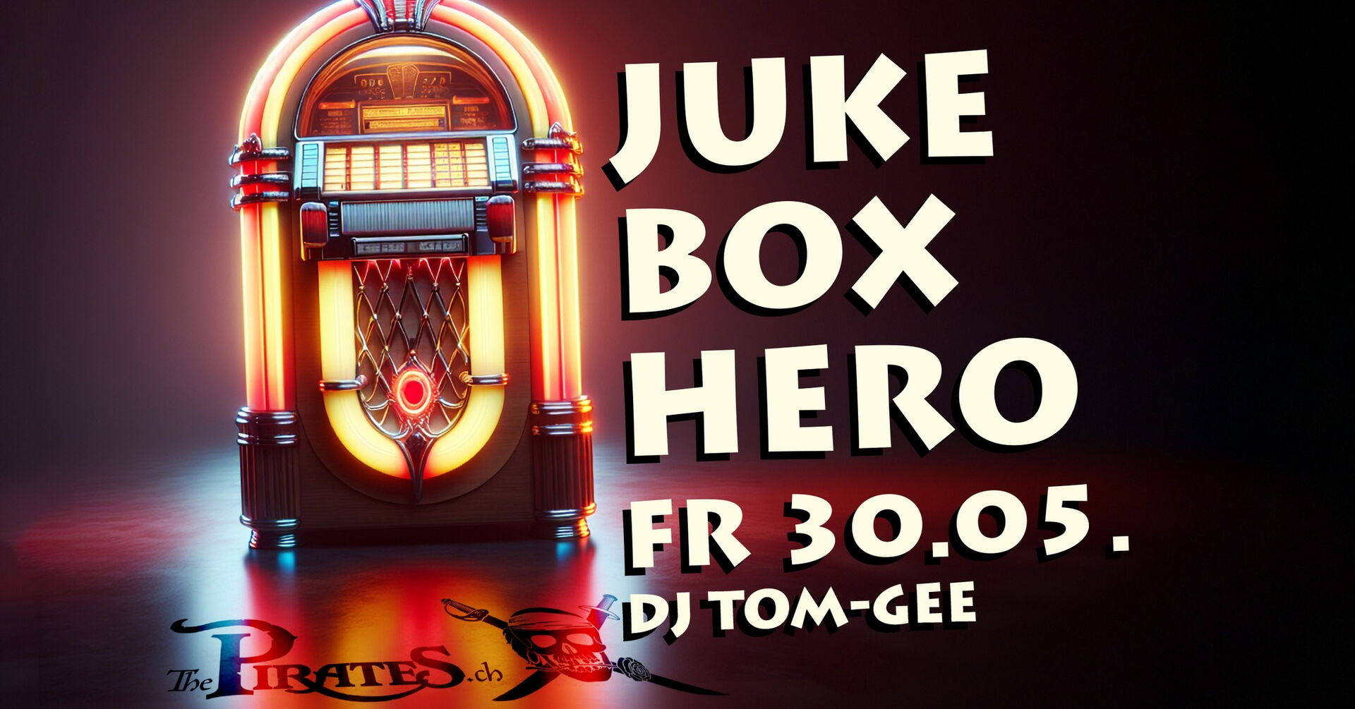 Juke Box Hero! Deine Hits - unsere Party feat DJ Tom-Gee! Am Freitag 30. Mai 2025 steigt im The Pirates Hinwil die grosse Juke Box Hero Party! Grosse Hits - Deine Wahl! Wer sich vor der Party noch von unserer Kombüse stärken lassen will sollte unbedingt reservieren! Bis bald - in Deinem The Pirates Hinwil!